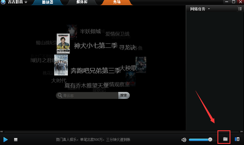 一、打開(kāi)吉吉影音播放器,進(jìn)入界面,點(diǎn)擊右下角的文件夾按鈕。