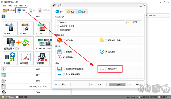 4、進(jìn)入軟件后,建議在設(shè)置選項(xiàng)里關(guān)閉“自動(dòng)檢測(cè)更新”,避免不必要的彈窗干擾。