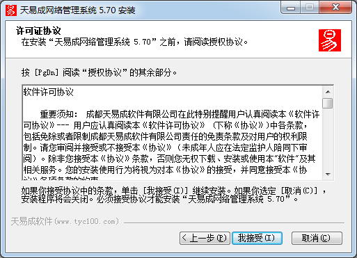 在安裝“天易成網(wǎng)絡(luò)管理系統(tǒng)5. 70”之前,請閱讀授權(quán)協(xié)議。