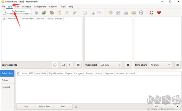 1、安裝后啟動軟件,在菜單欄中找到“Edit – Preferences…”