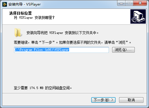 安裝向?qū)裋SPlayer 安裝到以下文件夾中。
