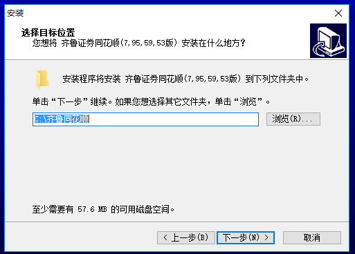 安裝程序?qū)惭b齊魯證券同花順(7, 95, 59 53版)到下列文件夾中。