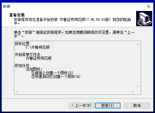 安裝程序現(xiàn)在準(zhǔn)備開(kāi)始安裝齊魯證券同花順(7, 95, 59, 53版)到您的電腦中。
