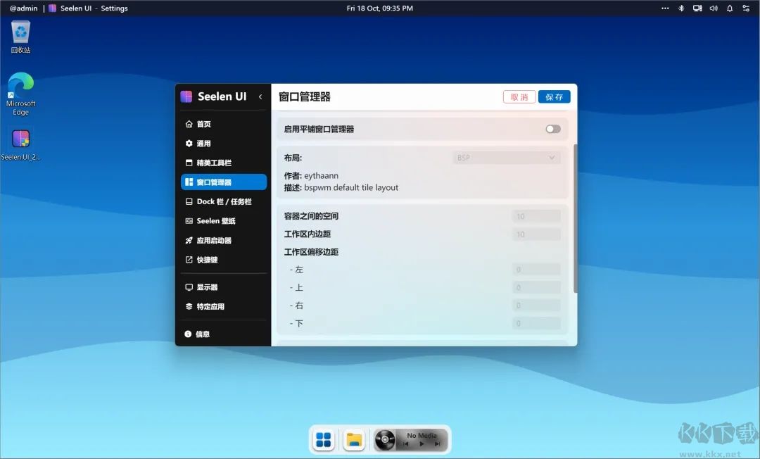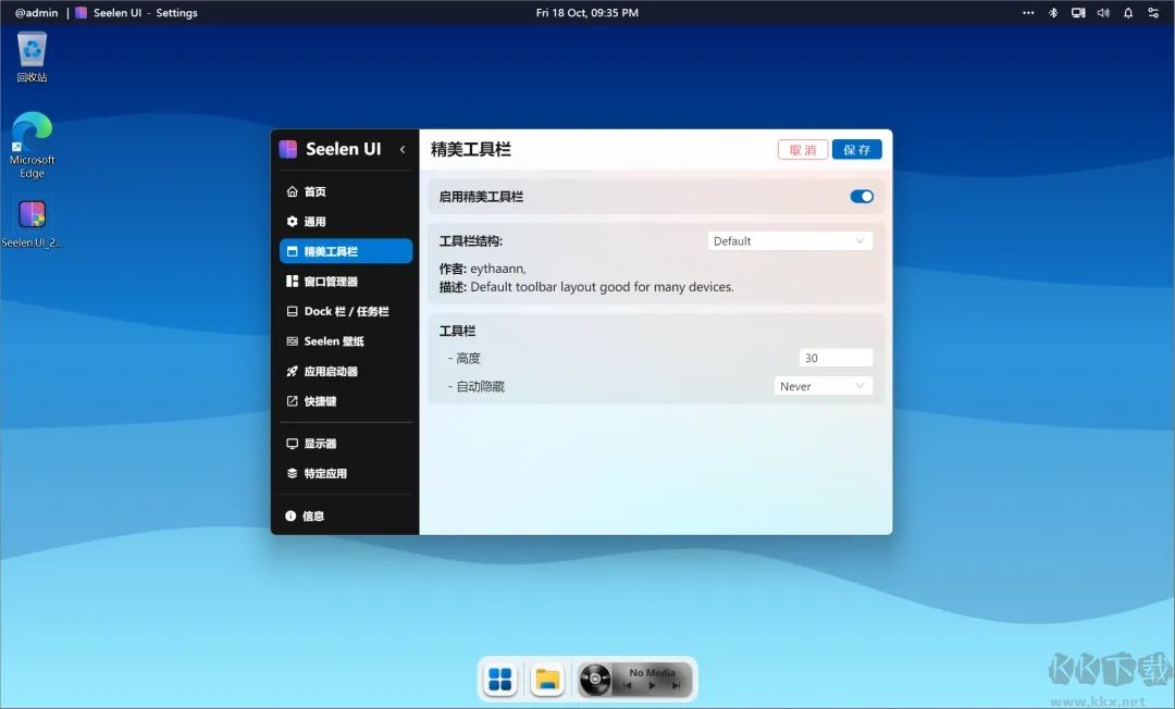 “Dock欄/任務(wù)欄”選項(xiàng)允許用戶自定義 Seelen UI 提供的懸浮 Dock 欄,用戶可以調(diào)整它的大小、可見性、位置和寬度。