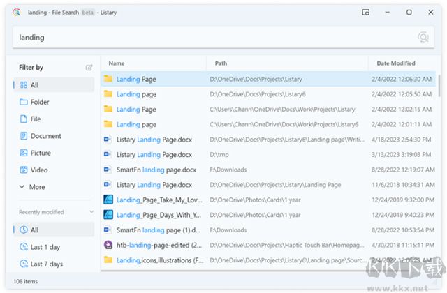 現(xiàn)在搜索文件時,界面更大,顯示內(nèi)容更多,一眼就能瀏覽大量結果。就算文件數(shù)量達到百萬級別,滾動依然流暢順滑,查找更方便。