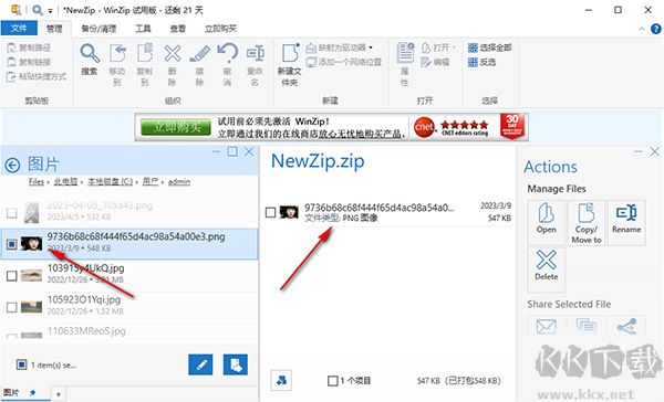 4、在 Windows Explorer 與 WinZip 間無縫切換