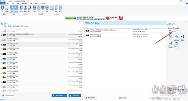 3、如果你想要將多個(gè)文件添加到一個(gè)壓縮文件中,那么我們可以批量將自己想要進(jìn)行壓縮的文件添加到中間的窗口中即可,之后點(diǎn)擊右側(cè)的【save as】按鈕進(jìn)行保存。