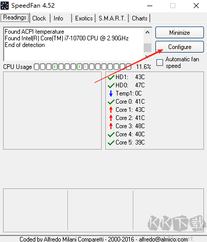 SpeedFan(風(fēng)扇調(diào)速軟件)是一款專注于電腦硬件溫控的工具軟件,是監(jiān)視CPU風(fēng)扇轉(zhuǎn)速、芯片溫度,支持對(duì)風(fēng)扇轉(zhuǎn)速進(jìn)行調(diào)節(jié)。它能實(shí)時(shí)監(jiān)控并顯示芯片溫度,用戶可根據(jù)芯片的實(shí)時(shí)溫度設(shè)定風(fēng)扇轉(zhuǎn)速規(guī)則,通過(guò)動(dòng)態(tài)調(diào)整風(fēng)扇運(yùn)行狀態(tài),讓硬件核心溫度始終保持在穩(wěn)定區(qū)間,避免因溫度過(guò)高影響設(shè)備性能或壽命。新增了S.M.A.R.T(自我監(jiān)測(cè)、分析與報(bào)告技術(shù))功能,可對(duì)硬盤(pán)進(jìn)行全方位監(jiān)測(cè):通過(guò)硬盤(pán)自帶的監(jiān)測(cè)指令,結(jié)合軟件自身的分析能力,對(duì)硬盤(pán)磁頭、盤(pán)片、馬達(dá)的運(yùn)行狀態(tài),以及設(shè)備歷史工作記錄、預(yù)設(shè)安全值等數(shù)據(jù)進(jìn)行實(shí)時(shí)分析與比對(duì);若檢測(cè)到硬盤(pán)存在異常問(wèn)題,軟件會(huì)及時(shí)發(fā)出警告,通過(guò)更改FSB(前端總線)速度的方式,輔助降低硬件運(yùn)行風(fēng)險(xiǎn)。