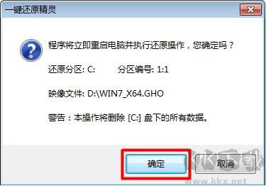 5、提示將立即重啟并開始還原,點(diǎn)擊“確定”繼續(xù)。
