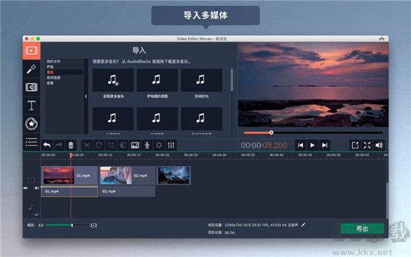 Movavi視頻編輯器兼容主流音視頻格式,包括MP4、MP3、MKV、AVI、FLV、VOB等。此外,可通過Windows平臺軟件將DV/HDV攝像機中的素材導入硬盤,并轉(zhuǎn)換為任意所需格式。