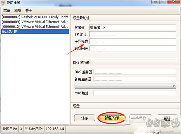 1、IP切換工具操作簡便,可在界面中輸入IP名稱并配置對應地址。
