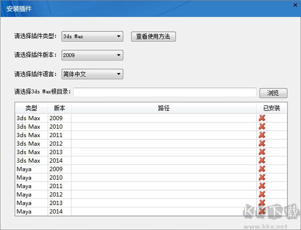 ①在“請選擇插件類型”下拉列表框中選擇軟件類型,例如“3ds Max”。