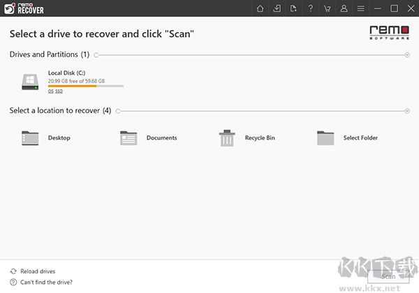 1、Remo Recover數(shù)據(jù)掃描操作簡便,可快速定位本地存儲中的信息。