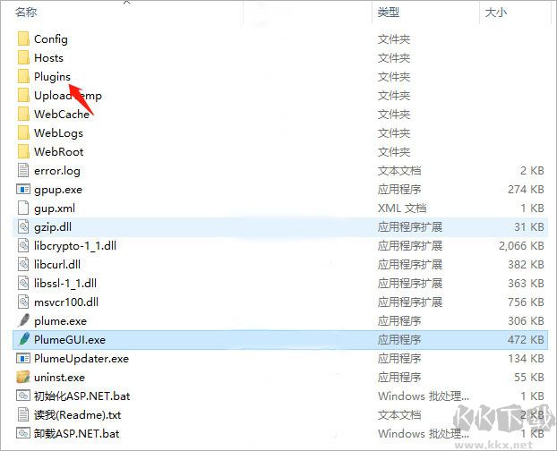 6、再次進入程序目錄,找到并進入 Plugins 文件夾,用編輯工具打開 Plume_FPM.ini 文件進行編輯。