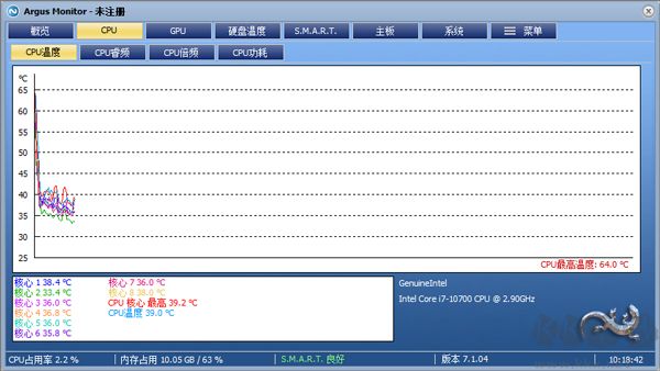7、用圖表形式展示顯卡溫度的監(jiān)測結(jié)果,并且用圖表形式呈現(xiàn)處理器溫度的變化(每個處理器核心單獨顯示)。