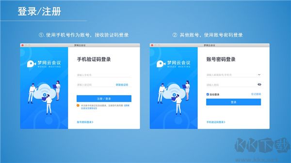 首次使用夢網(wǎng)云會議,使用手機(jī)號碼接收驗證碼,即可注冊賬號并登錄。