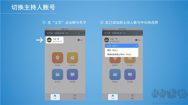 1)如果您有企業(yè)版主持人賬號,您可以在主持人管理界面添加綁定企業(yè)主持人賬號,并根據(jù)您的會議情況切換使用。