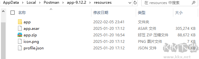 3、找到安裝目錄(路徑為 C:/Users/ 用戶名 / AppData/Local/Postman/app-9.12.2/resources),將 App.zip 文件復(fù)制進(jìn)去,接著解壓該文件得到 app 文件夾。