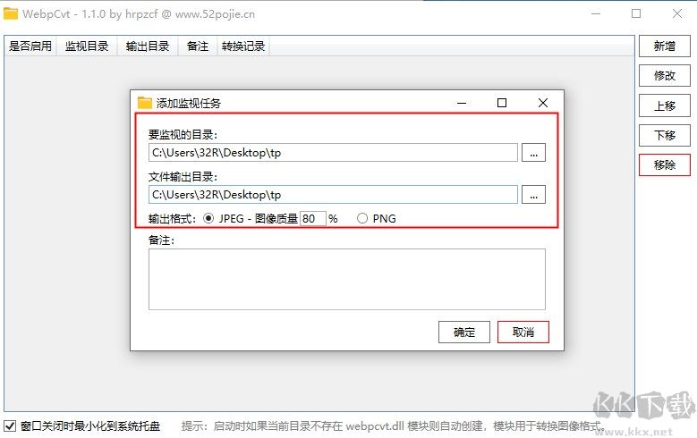 程序可監(jiān)控設(shè)定的文件夾,當(dāng)檢測(cè)到新加入的webp圖片時(shí),便會(huì)立刻將其轉(zhuǎn)為jpeg或png格式。