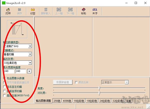 1、Image2Lcd支持設(shè)定顏色數(shù)據(jù)排列方式,包括18位真彩色、24位真彩色以及32位真彩色。