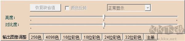 該區(qū)域包含多個(gè)配置頁(yè)面:輸出圖像調(diào)整、256色、16位彩色、18位彩色、24位彩色、32位彩色,未注冊(cè)版本額外包含“注冊(cè)”頁(yè)面。