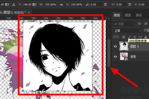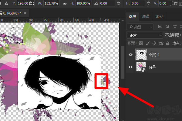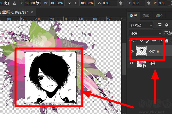 1、將新的圖片插入到ps中,用鼠標(biāo)點(diǎn)擊插入圖片的圖層,然后同時(shí)按住鍵盤上的“Ctrl”鍵+“T”鍵打開自由變換,這時(shí)被選中的圖層將會(huì)被一個(gè)矩形圍?。?/p>