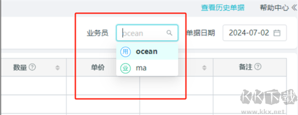 在選擇單據(jù)的業(yè)務(wù)員時(shí),可以選擇用戶或業(yè)務(wù)員。