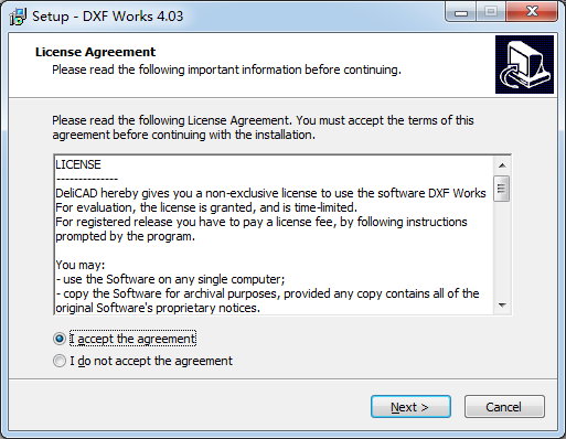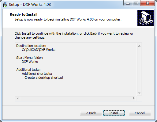 Setup is now ready to begin installing DXF Works 4.03 on your computer.