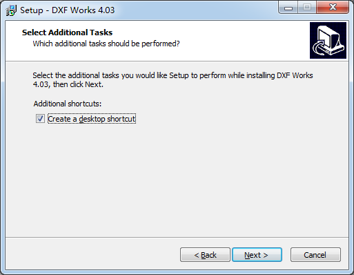 Select the additional tasks you would like Setup to perform while installing DXF Works4.03, then click Next.