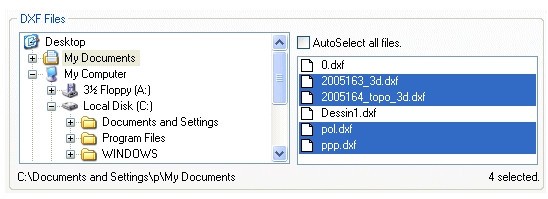 使用左側(cè)窗口瀏覽您的磁盤,在點擊時按住[Ctrl]鍵選擇多個文件。如果您選擇該選項,所有DXF文件將被自動選擇。