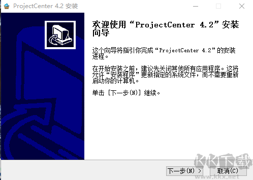 1、解壓安裝包,雙擊“ProjectCenterV4.2.exe”,等待片刻自動(dòng)彈出安裝界面,直接跳過(guò)點(diǎn)擊下一步