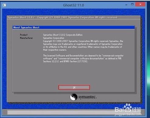 打開GHOST之后會出現(xiàn)以下界面,我們點(diǎn)擊OK。