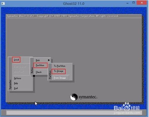 3、GHOST是英文的風(fēng)們使用鍵盤選擇 Load——>>Partition——>>To Image (分區(qū)到鏡像)