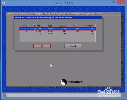 4、接下來是選擇硬盤,單硬盤用戶一般選大的就可以了,多硬硬盤的朋友一般選擇磁盤1,通常是最上面一個,點(diǎn)擊“OK”