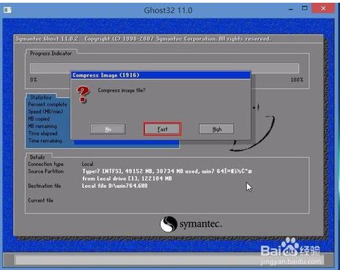 7、出現(xiàn)一個提示,讓你選擇是快速備份還是高壓縮備份,選擇Fast的話備份比較快,但是備份文件會比較大,high的話備份文件小,但是備份和恢復(fù)都會慢一些。