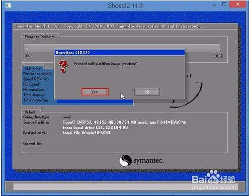 8、選擇一個后出現(xiàn)確定備份提示,YES開始備份