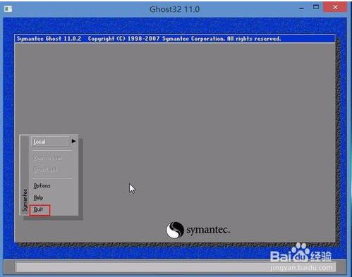 3、 回車后 就會進(jìn)入GHOST 的操作界面 選擇菜單到 Local(本機(jī))--Partition(分區(qū))--From Image(來至鏡像)