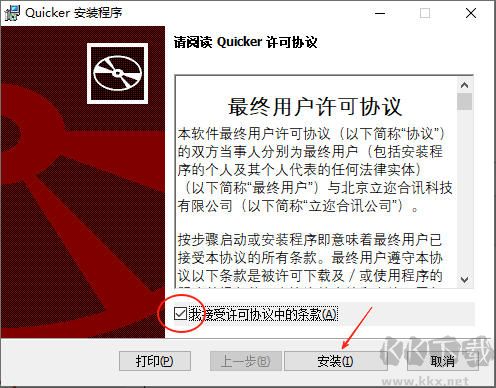 2、選擇“我接受許可協(xié)議中的條款”,再點擊“安裝”;