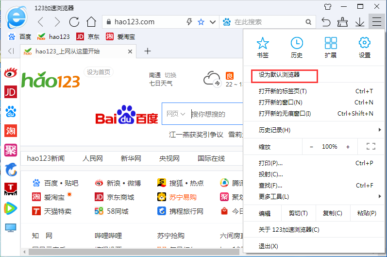 將123瀏覽器設(shè)為默認(rèn)瀏覽器的方法