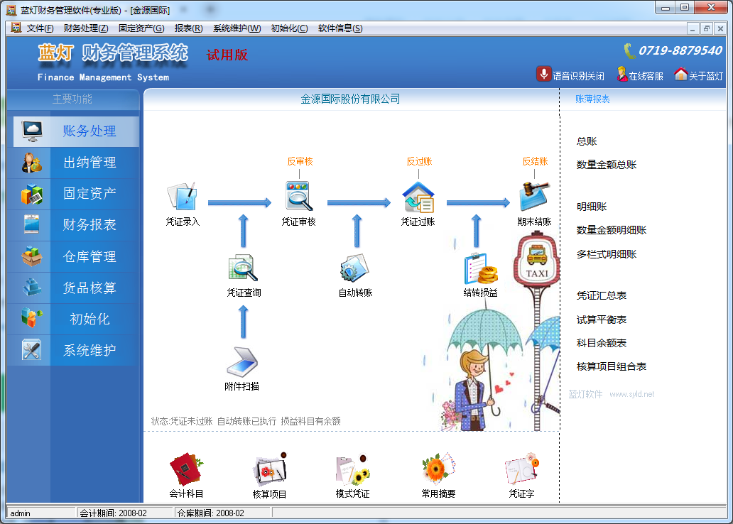 1、功能模塊:財(cái)務(wù)處理、出納管理、固定資產(chǎn)、報(bào)表、系統(tǒng)維護(hù)