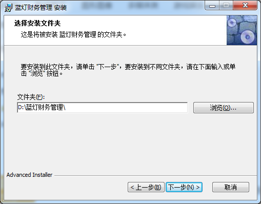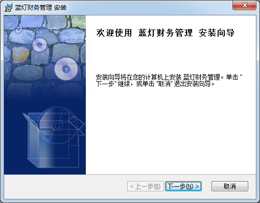 安裝向?qū)⒃谀挠?jì)算機(jī)上安裝藍(lán)燈財(cái)務(wù)管理。單擊”下一步”維續(xù)或單擊“取消”退出安裝尚導(dǎo)。