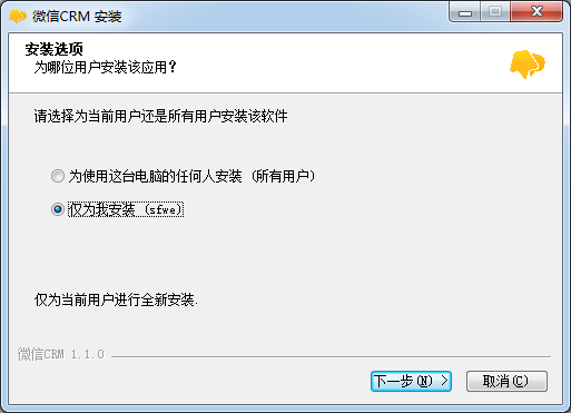 請(qǐng)選擇為當(dāng)前用戶還是所有用戶安裝該軟件