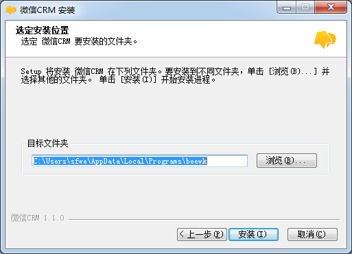 setyp將安裝微信CRM在下列文件夾。安裝到不同文件夾,單擊【瀏覽】并選擇其他的文件夾。單擊【安裝】開(kāi)始安裝進(jìn)程!