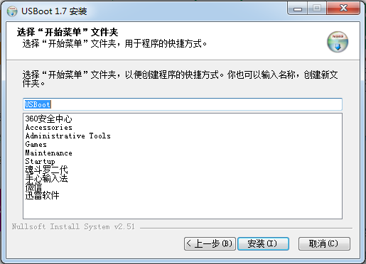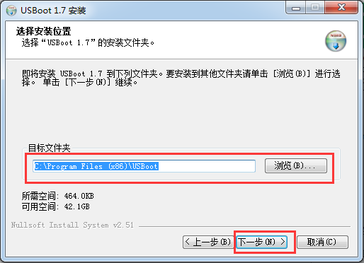 即將安裝USEoot 1.7.到下列文件夾。要安裝到其他文件夾請單擊〔瀏覽B)】進行選擇!