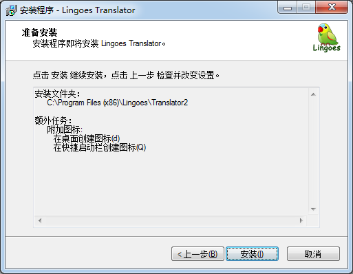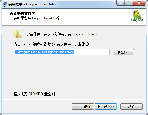 安裝程序將在以下文件夾安裝Lingoes Translator o