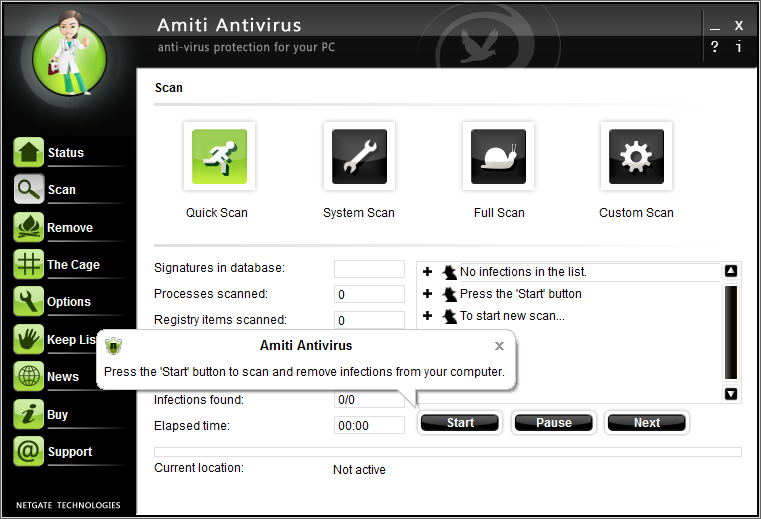 假如AmitiAntivirus碰到感柒,它會被發(fā)送至“TheCage”,您還可以在這其中“永久刪除”或“修復(fù)”該新項目。該系統(tǒng)還給予掃描生產(chǎn)調(diào)度程序流程,能夠在特殊條件下為客戶定位的間距實行。除此之外,它還使您可以建立“保存目錄”,在其中包括需從“系統(tǒng)掃描”中排出的目標(biāo)。