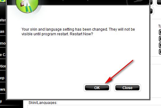 5、提示:您已更改了程序的皮膚或語言設(shè)置,它們將在程序重新啟動后生效,立即重啟嗎?點擊OK