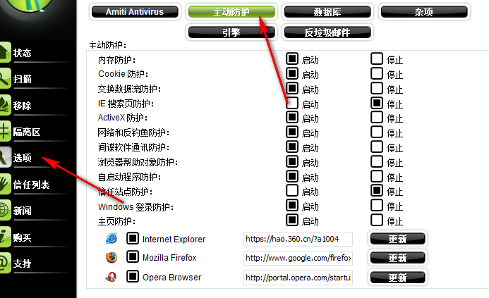 7、這里是防護(hù)的功能,在這里出現(xiàn)很多項目,勾選啟動就可以了,不需要的就點擊停止