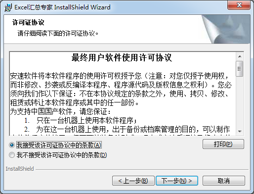 Installshield(R)Wizard將要在您的計(jì)算機(jī)中安裝Excel匯總專家。要維續(xù),請單擊”下—步。
