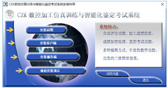 下載CZK數(shù)控加工仿真考核軟件,解壓壓縮包,然后打開exe安裝包點擊【安裝客戶端】;